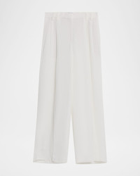 Monili-Trim Linen Gabardine Wide-Leg Pants