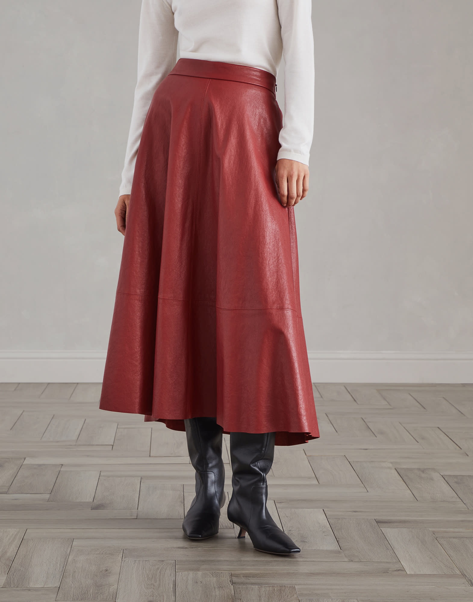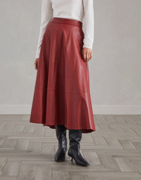 The refined natural leather reinterprets the classic style of this Circle Midi skirt in a contemporary way. The polished leather enhances the season’s colors and is paired with a relaxed, slightly flared silhouette, creating a sophisticated design contrast. The Midi length highlights the skirt’s feminine nature. MATERIALS The natural leather is characterized by a soft texture and a fine grain that enhances the beauty of the material, giving it a natural appearance. DETAILS Side zip closure Raw edge effect hem Lined REAL LEATHER