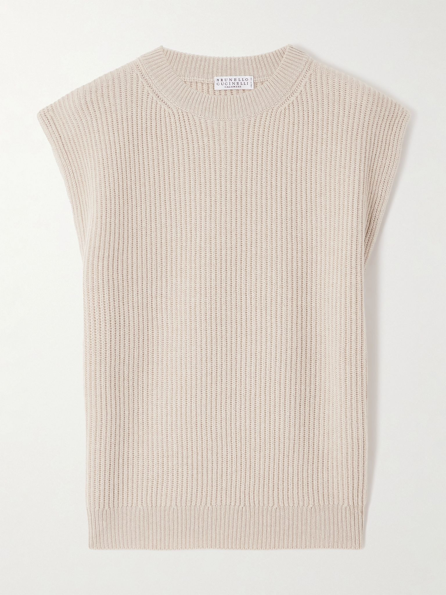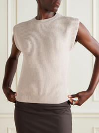 Ribbed wool, cashmere and silk-blend sweater Beige