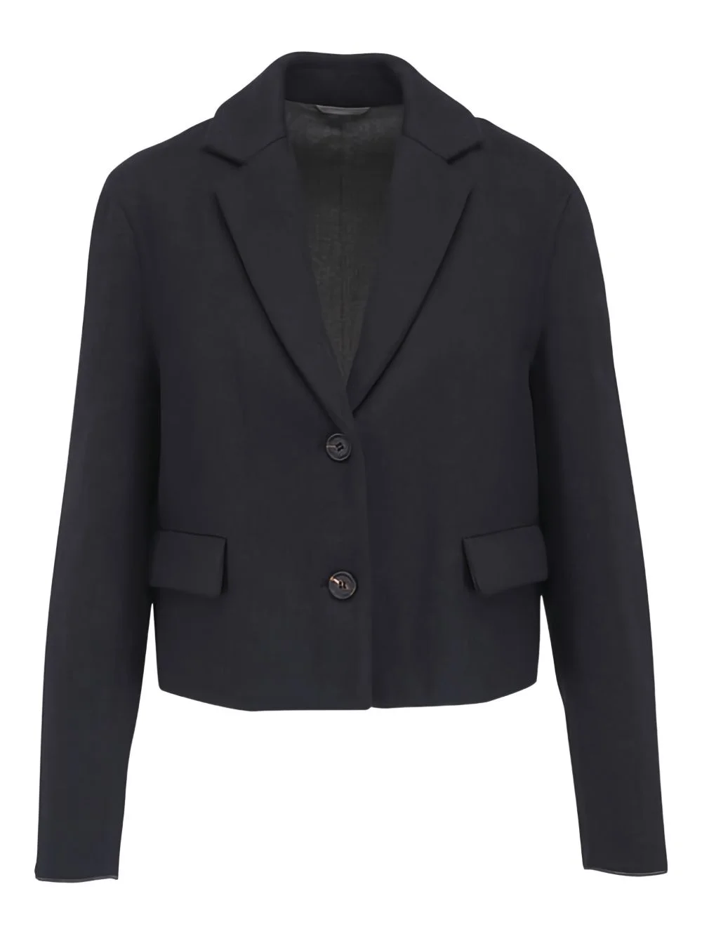 notched-lapel two-button jacket Highlights - Navy blue - Notched lapel - Two-button fastening - Flap pockets - Long sleeves - Buttoned cuffs Made in Italy Composition Fabric 100% Washing instructions Read Manufacturer Guidelines
