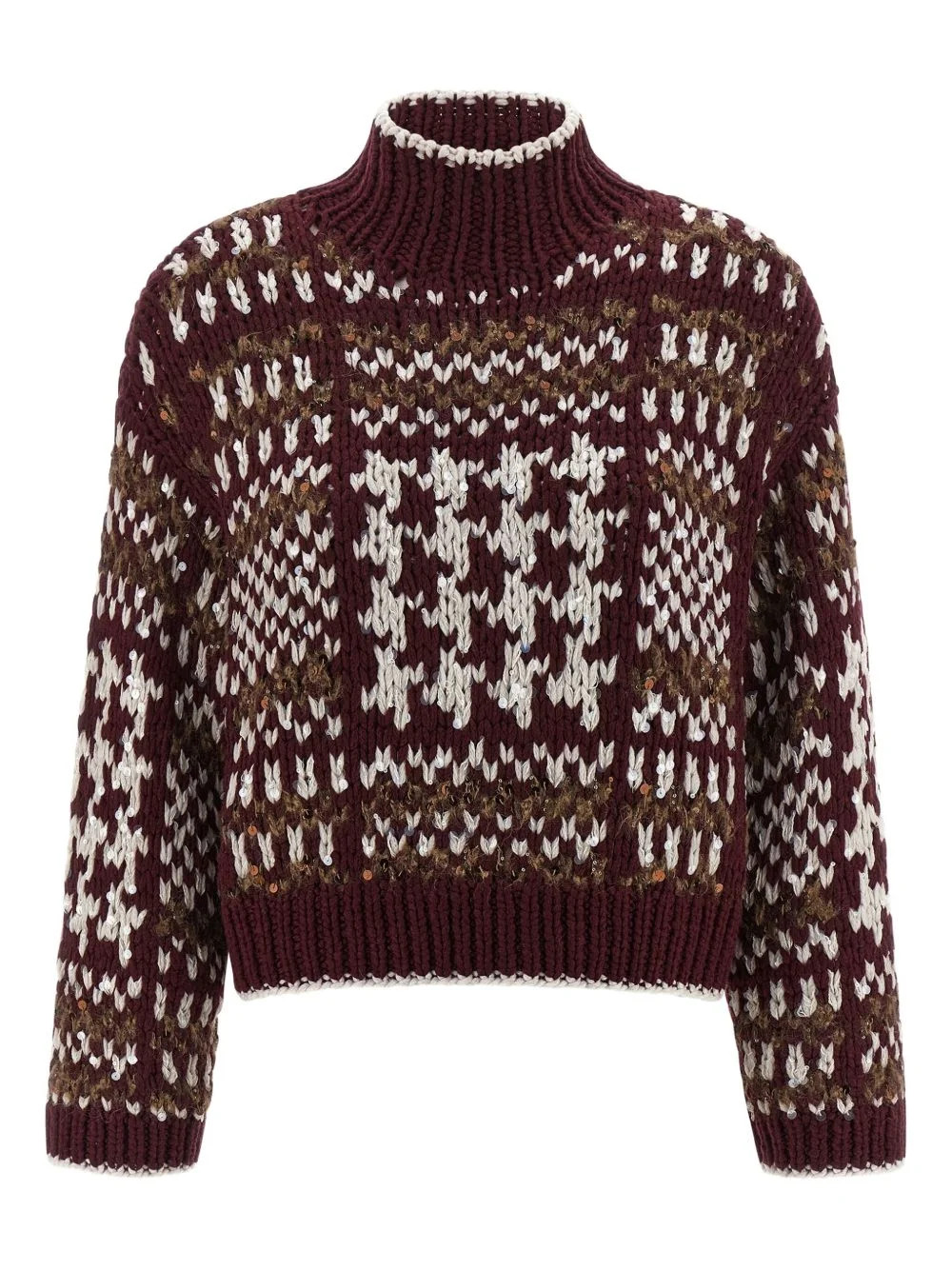 Prince Of Wales cashmere sweater Highlights - Burgundy - Prince of wales pattern - Sequin embellishments - High neck - Long sleeves - Cashmere Made in Italy Composition Cashmere 100% Washing instructions Read Manufacturer Guidelines