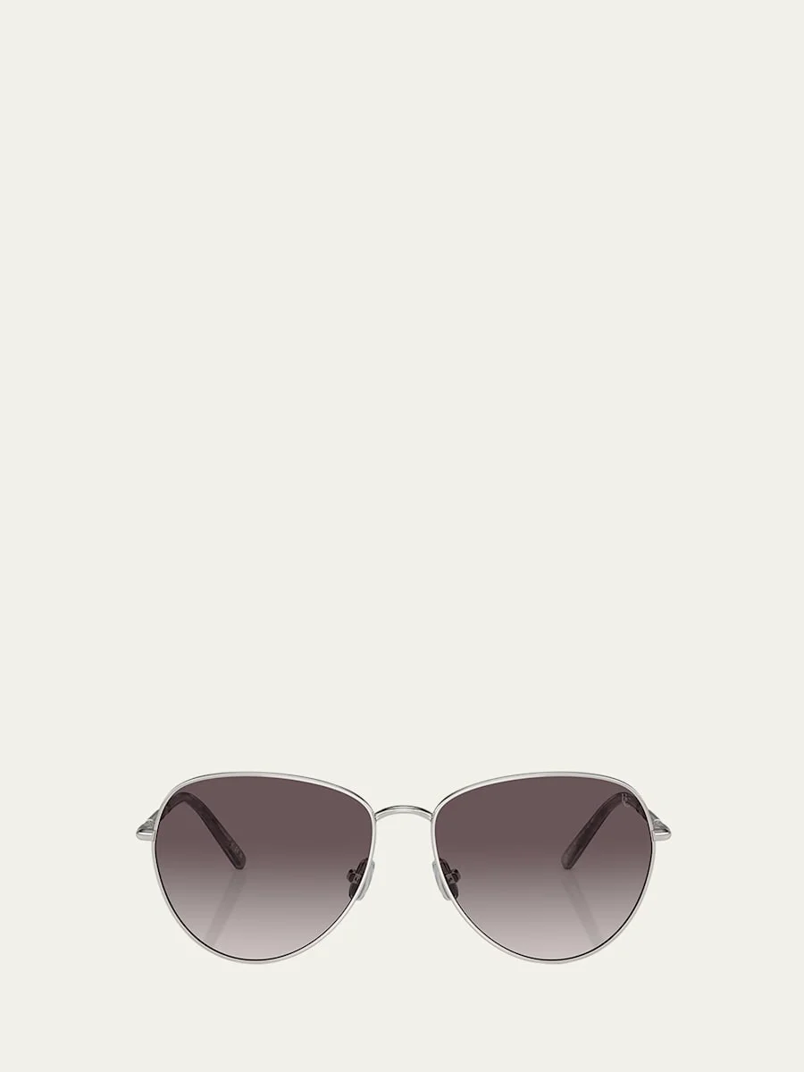 Brunello Cucinelli "BC2001ST 57" aviator sunglasses in titanium and plastic Lens/bridge/temple (in mm): 57-15-140 High nose bridge fit Adjustable nose pads Logo on temples Thin, tapered arms Capped earpieces 100% UVA/UVB protection Made in Brazil Proposition 65 warning for California residents Online Inquiries: BGS21_D4X75| Store Inquiries: #4789730