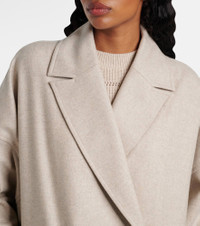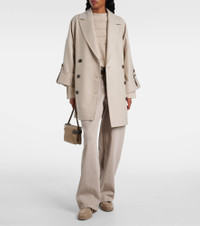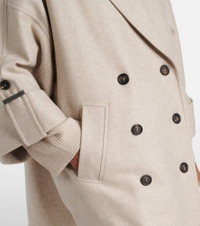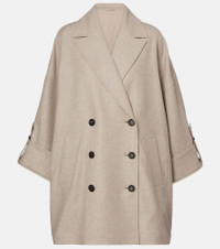 This jacket from Brunello Cucinelli combines the elegance of a double-breasted silhouette with dropped shoulders and an oversized fit. Crafted from sumptuous beige wool, this unique jacket is a refined outerwear piece. Product Details - Material: 98% wool, 2% other fibres - Care instructions: dry clean - Made in Italy - Designer color name: Beige - Item color: beige - Lining: 74% acetate, 26% silk - Contains non-textile parts of animal origin - Pockets: welt pockets - Collar: notch neck - Closure: double-breasted (six buttons) - Includes: garment bag - Item number: P01054361 Size & Fit - True to size - Oversized - Non-stretchy fabric - Falls below the hip - The model seen in the picture is 178cm-5'10" and wearing a size IT 40