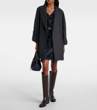 This jacket from Brunello Cucinelli combines the elegance of a double-breasted silhouette with dropped shoulders and an oversized fit. Crafted from sumptuous grey wool, this unique jacket is a refined outerwear piece. Product Details - Material: 98% wool, 2% other fibres - Care instructions: dry clean - Made in Italy - Designer color name: Anthrcite - Item color: gray - Lining: 74% acetate, 26% silk - Contains non-textile parts of animal origin - Closure: double-breasted (six buttons) - Notched lapel - Pockets: welt pockets - Item number: P01054375 Size & Fit - True to size - Oversized - Non-stretchy fabric - Falls below the hip - The model seen in the picture is 178cm-5'10" and wearing a size IT 40