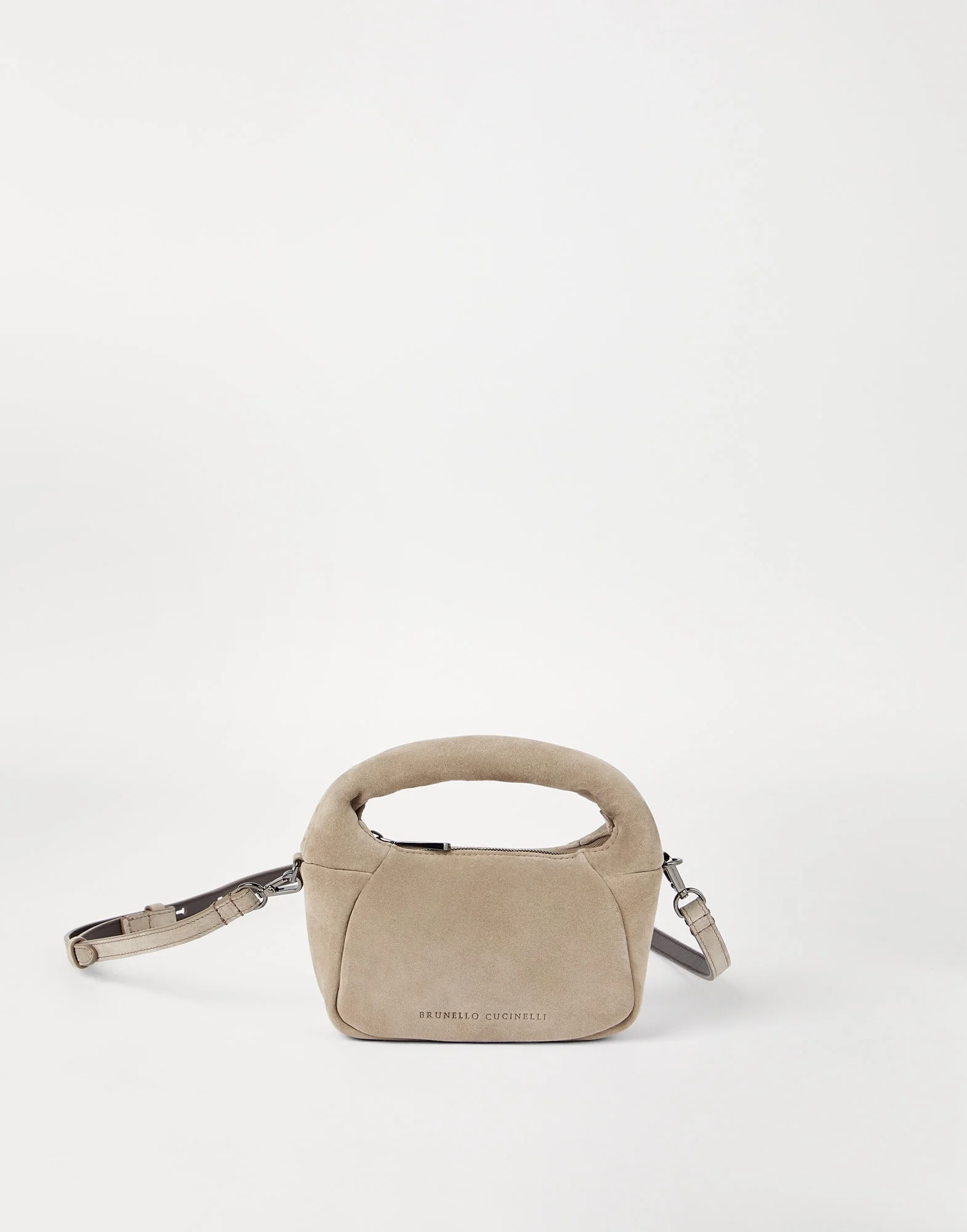 An essential, refined design reinterprets the retro feel of this new mini suede BC Duo Hobo bag. Soft and velvety leather enhances the minimalist lines, complemented by the single handle and the adjustable and removable shoulder strap, allowing the bag to be carried in hand or on the shoulder. The accessory is equipped with a practical internal compartment for credit and business cards. MATERIALS The refined suede has an elegant, sophisticated appearance characterized by its unmistakable velvety, slightly uneven texture. DETAILS Zip closure Handle Adjustable and detachable shoulder strap Leather lining 1 slot for cards and business cards Bag is 18 cm long, 7 cm wide and 16 cm high REAL LEATHER