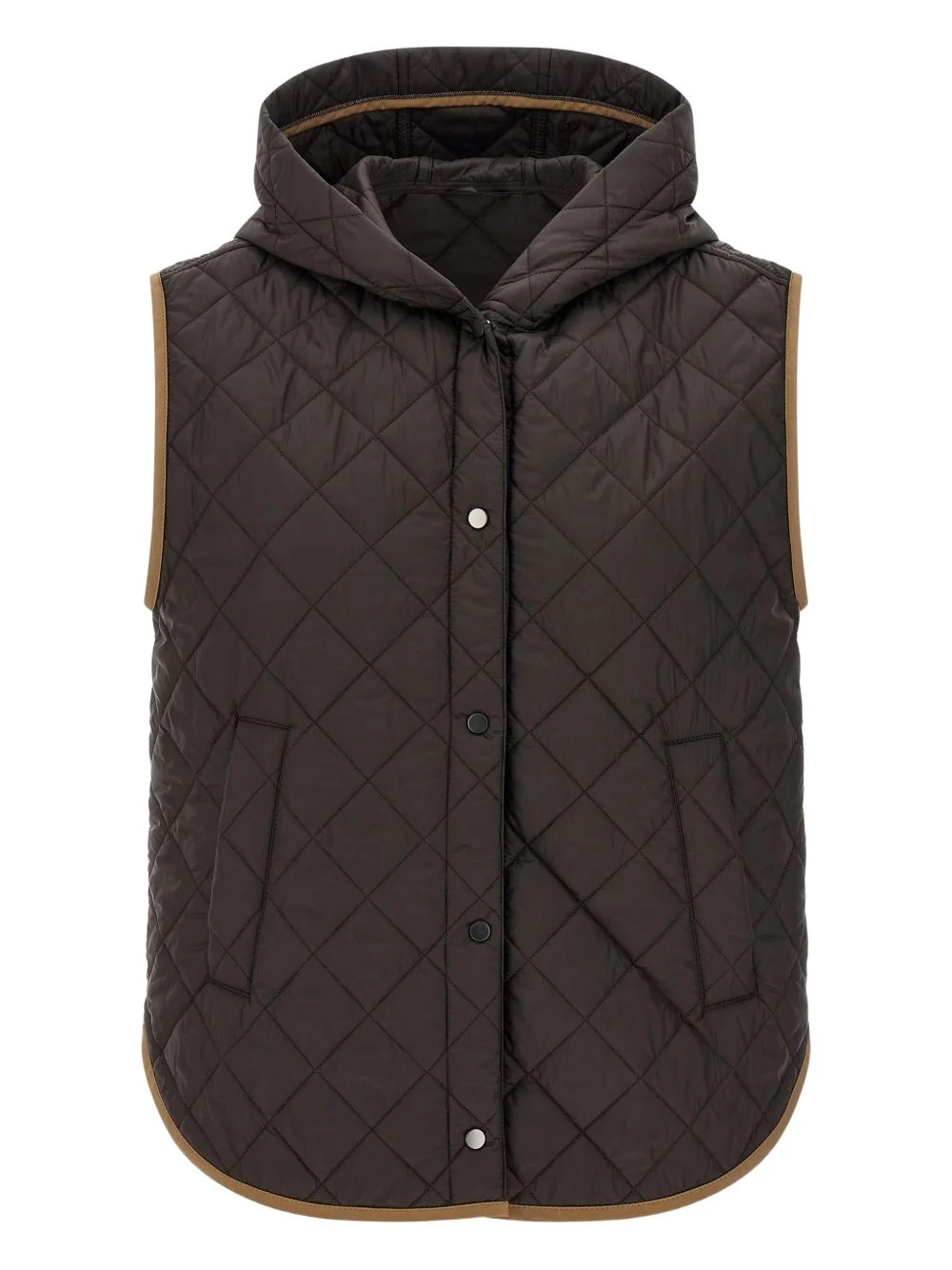 hooded quilted gilet Highlights - Brown - Padded - Snap button closure - Side pockets - Contrasting trim - Hood Made in Italy Composition Nylon 100%