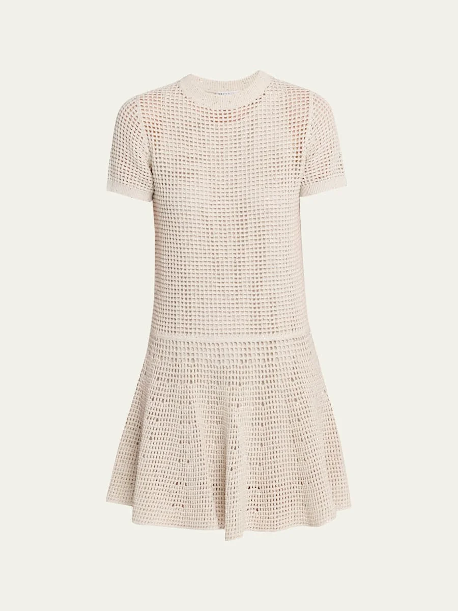 Pailette Open Knit Drop-Waist Short-Sleeve Mini Dress