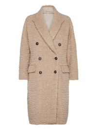 boucle sequin coat Highlights - Camel - Boucle texture - Sequin embellishment - Double-breasted fastening - Notched lapel - Welt pockets Made in Italy Composition Virgin Wool 55%, Mohair 40%, Fabric 5% Washing instructions Read Manufacturer Guidelines