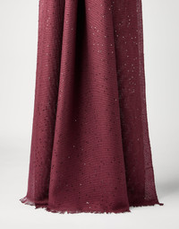 A sophisticated and shimmering look define this new cashmere and silk Diamond yarn scarf. The surface’s shiny reflections provide the accessory with a sparkling note. The fringe edges complete the style of the scarf with a bold touch. MATERIALS Cashmere is combined with silk to obtain an ultra-soft and weightless-effect yarn. DETAILS Scarf measures approx. 80 cm (31.50") x 200 cm (78.74") 70% CASHMERE, 30% SILK