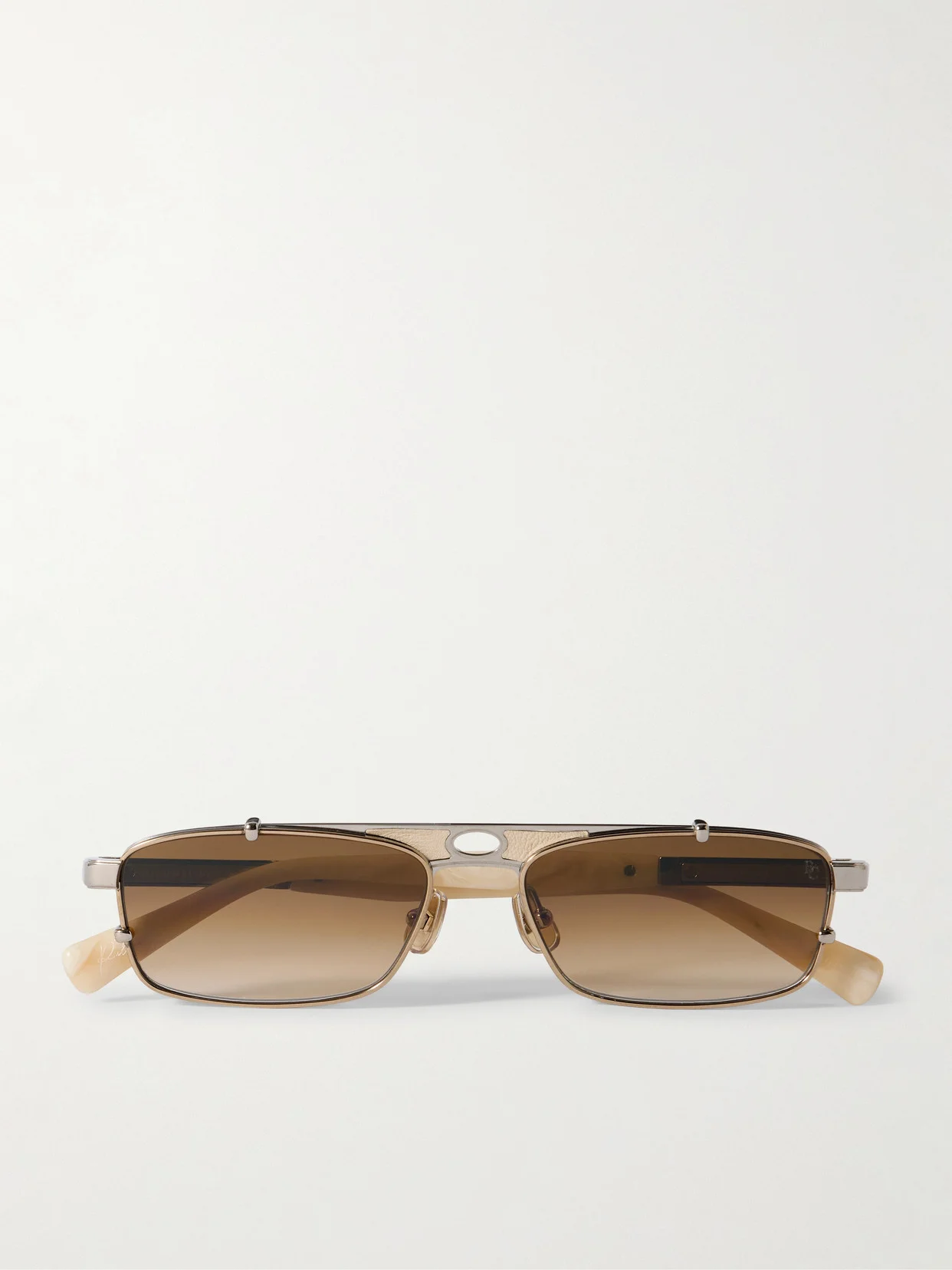 Each part of Brunello Cucinelli Eyewear's 'Paloma' sunglasses demonstrates the house's craftsmanship. They're made from robust titanium and have an aviator-style bridge that's inlaid with synthetic material and detailed with a circular cutout. Elongated acetate temple tips ensure comfort.