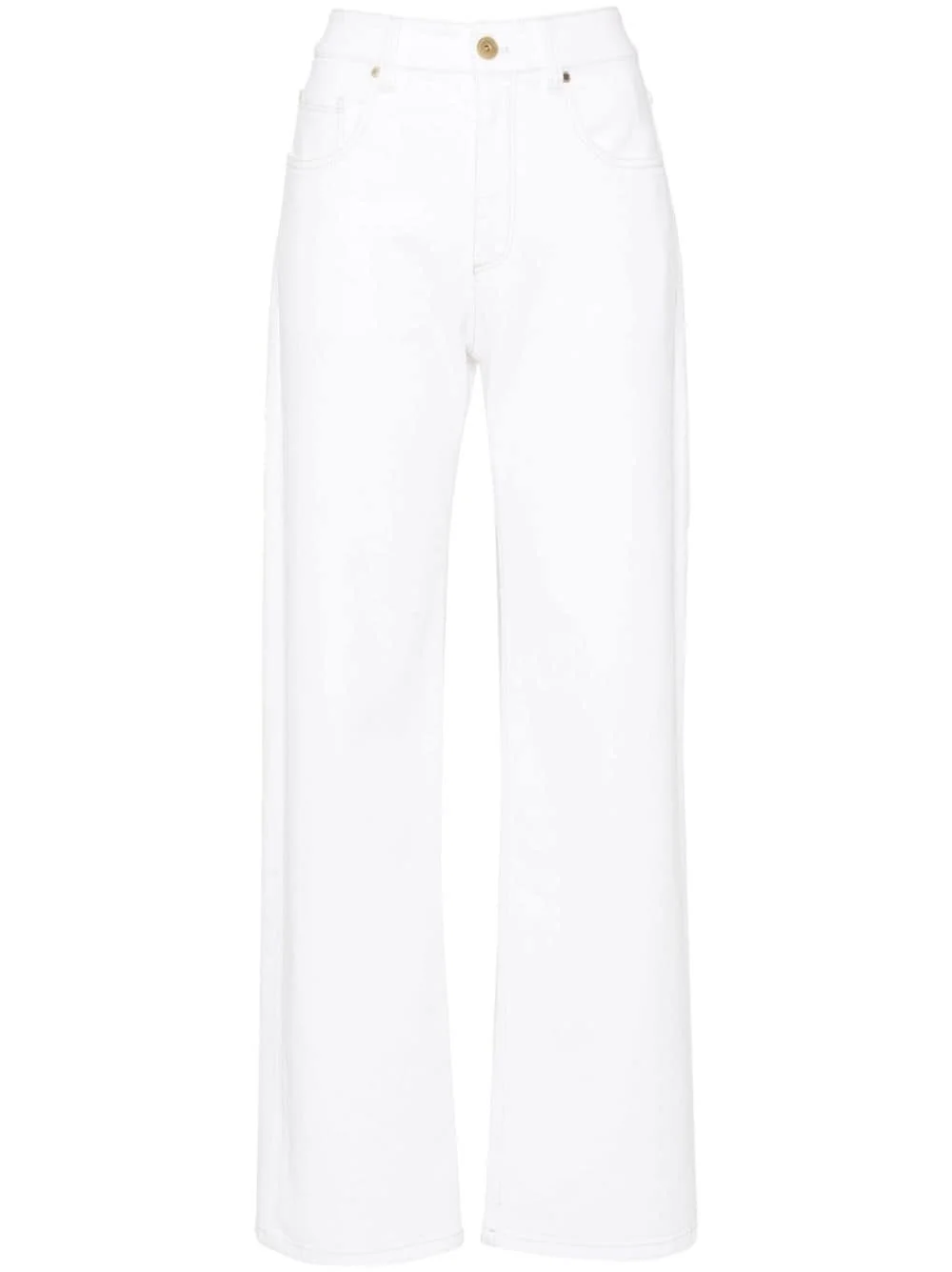 straight-leg jeans Highlights - White - Stretch-cotton - Denim - Contrast stitching - Belt loops - Classic five pockets - Leather tag - Straight leg - Concealed fly and button fastening Made in Italy Composition Outer: Cotton 98%, Elastane 2% Lining: Cotton 100% SIZE & FIT Model measurements Height 5 ft 10 in(1.78 m) Bust/Chest 32.67 in(83 cm) Hips 35.43 in(90 cm) Waist 23.22 in(59 cm) FittingInformation Designed for a straight-leg fit, these jeans allow for a close fit at the waist and an unrestricted and comfortable fit over the leg Constructed from stretch denim, this piece offers a stretch fit with durability This piece fits true to size – take your usual size