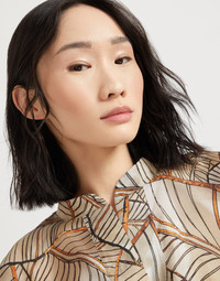 This new poncho reinterprets a classic feminine fabric with a pattern inspired by the beauty of nature. Made of lightweight, sinuous silk pongee, the garment features a silhouette that develops soft and wide at the bottom. The season’s new papyrus print depicts delicate papyrus leaves in a stylized way, adding a sophisticated exotic touch. MATERIALS Pure silk pongee is refined fabric characterized by a fluid texture and a semi-glossy appearance. The fabric is printed with a design inspired by the leaves of the papyrus plant in the season’s colors. DETAILS Snap opening V-neck Wide sleeve 100% SILK