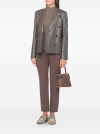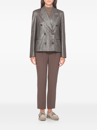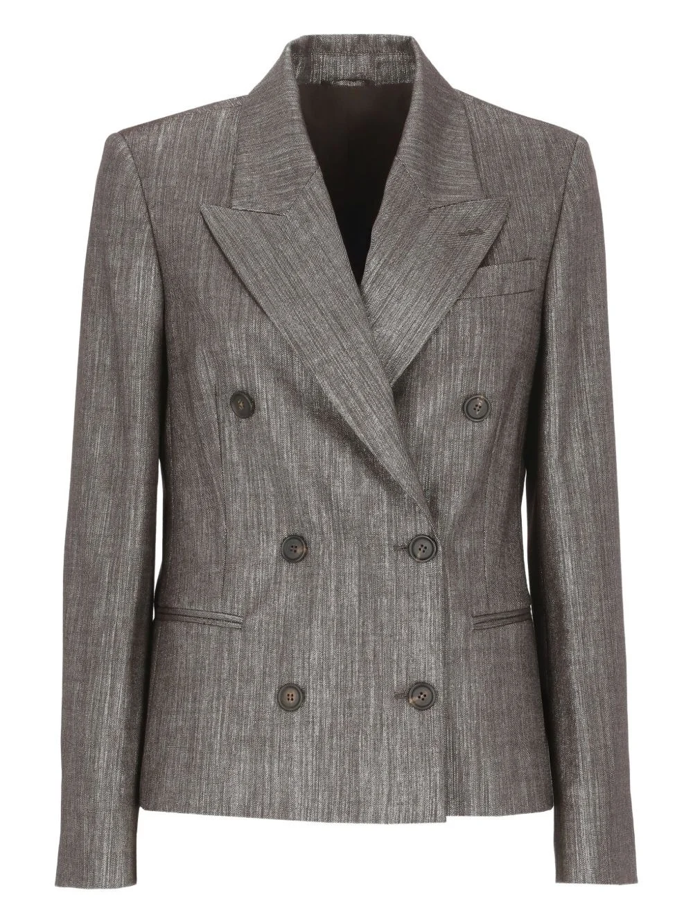 peak-lapel double-breasted blazer Highlights - Brown - Metallic lurex - Double-breasted fastening - Peak lapel collar - Long sleeves - Welt pockets Made in Italy Composition Polyester 32%, Viscose 27%, Virgin Wool 26%, Metallic Fibre 8%, Polyamide 4%, Elastane 3% Washing instructions Read Manufacturer Guidelines