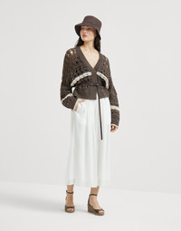 Feminine lines and a distinctly summery feel define this new cotton pinstripe organza full skirt. The elongated silhouette is accentuated by the striped pattern, typical of classic masculine elegance, while the slits at the bottom add a nice touch of movement. The pull-on fit and lining provide the skirt with added comfort. MATERIALS The finish of the ultra-lightweight pure cotton organza gives the texture a crisp, slightly irregular effect. The surface is covered with the pinstripe’s fine lines, a classic pattern of formal fabrics. DETAILS Pull-up skirt Vertical front pockets Silk-blend crepe lining Side vents at bottom 100% COTTON