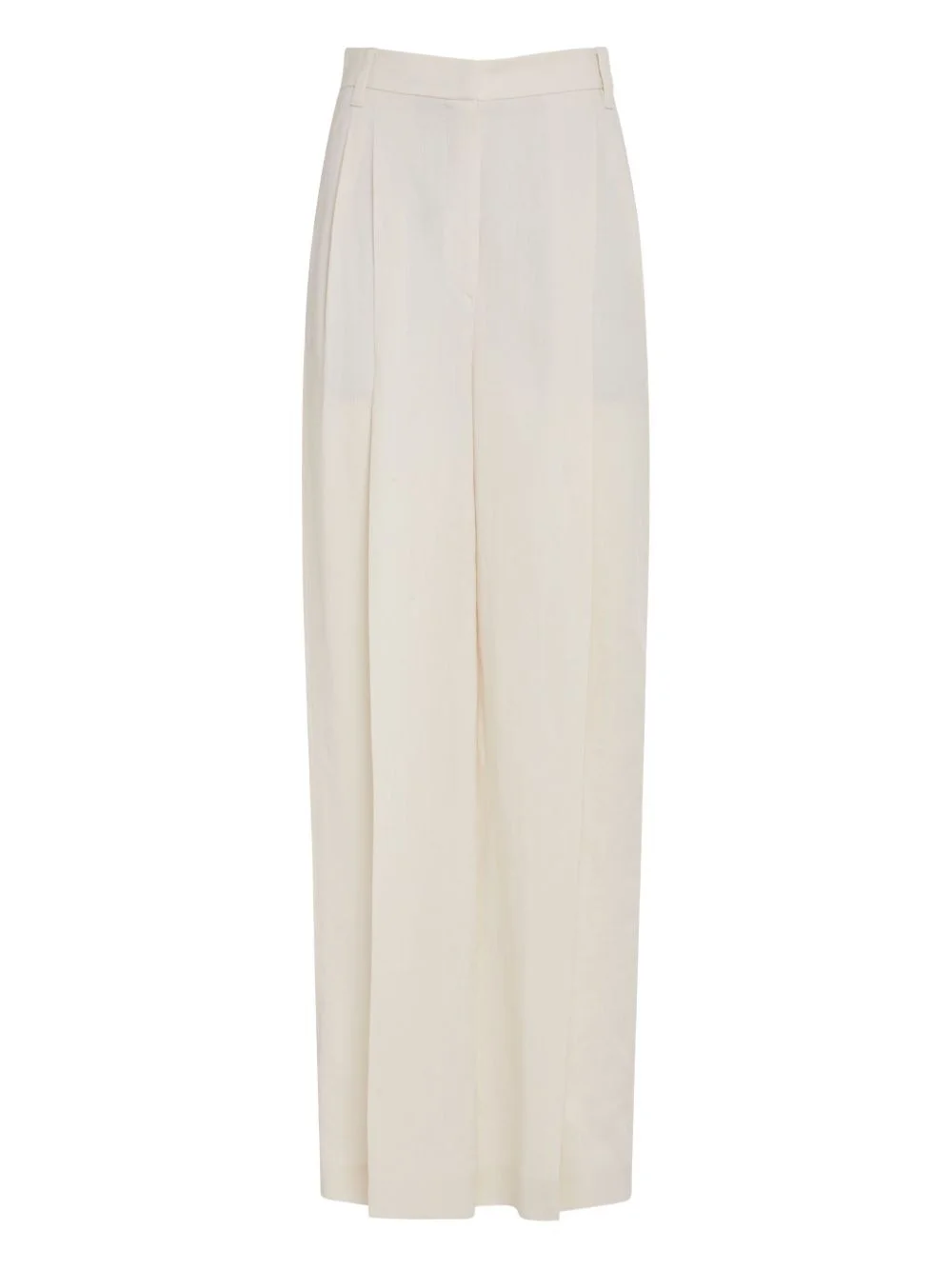 linen wide-leg trousers Highlights - White - Concealed front fastening - Belt loops - Two rear flap pockets - Pleat detailing Made in Italy Composition Linen/Flax 100%