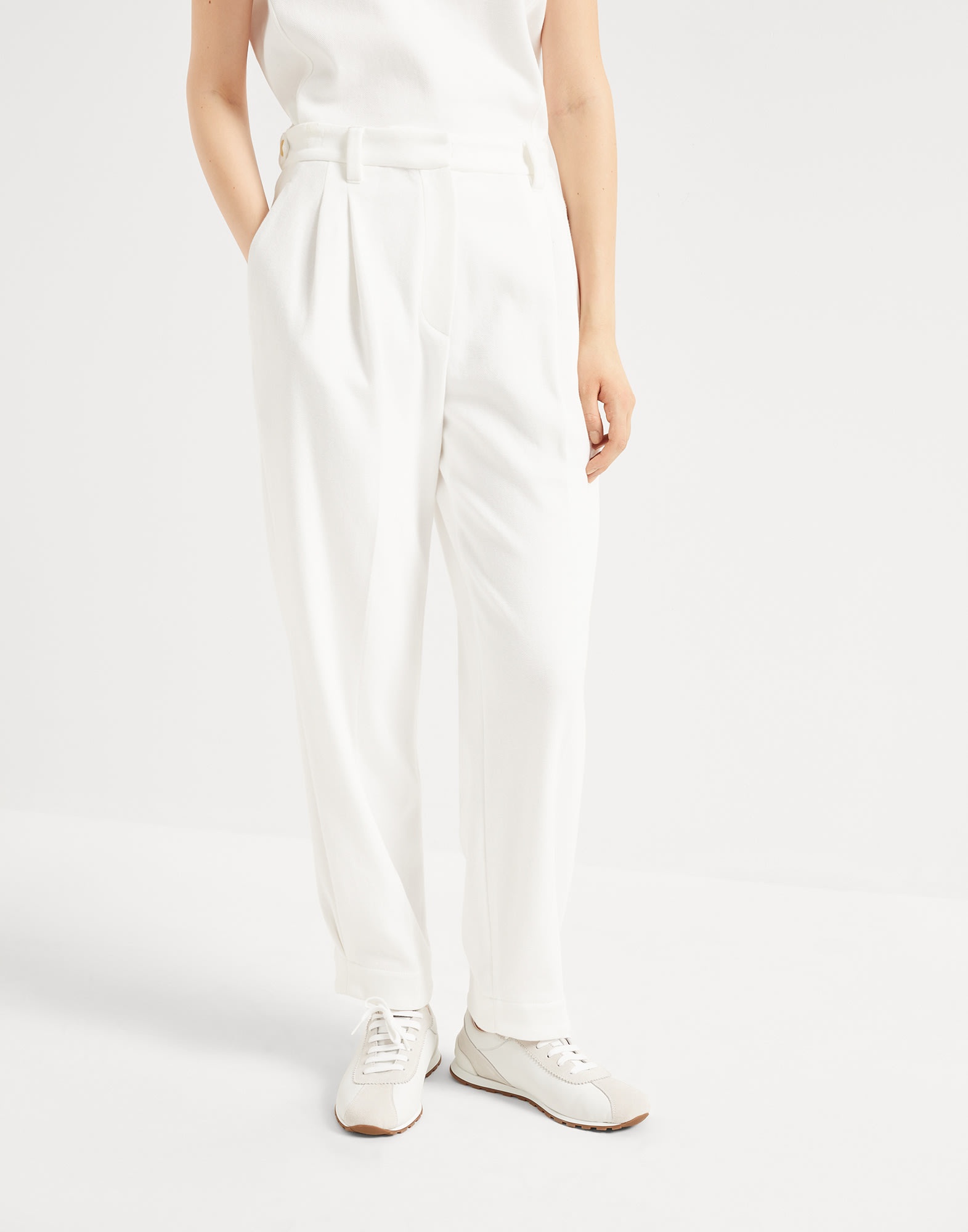 A sporty attitude meets sartorial details in the new Sartorial Baggy trousers. Double pleats on the front emphasize the relaxed silhouette, while the comfortable fit develops loosely and then tightens slightly at the bottom. MATERIALS Research on the finest materials elevates the sporty feel of cotton pique, a menswear-inspired fabric. The presence of a synthetic fiber makes the fabric comfortable, lightweight and extremely pleasant to wear. DETAILS Zip closure with metal hook and backing button Front pockets Double pleat Back pockets 93% COTTON, 7% NYLON
