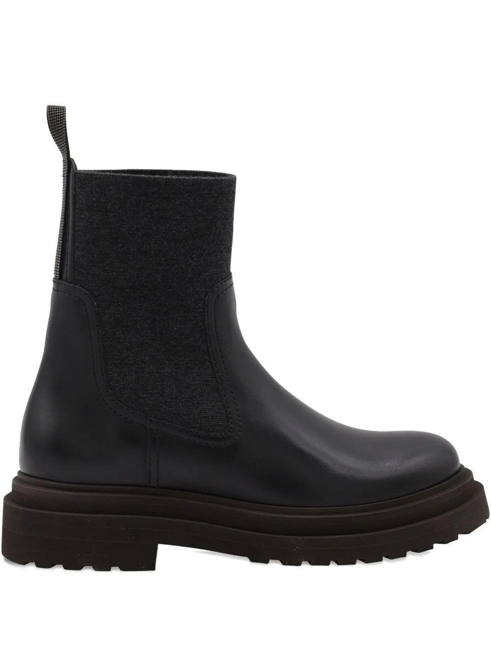 platform Chelsea boots Highlights - Black - Leather upper - Grey knit panel - Platform sole - Pull-tab - Beaded detail Made in Italy Composition Outer: Calf Leather 100% Lining: Calf Leather 100% Sole: Rubber 100%
