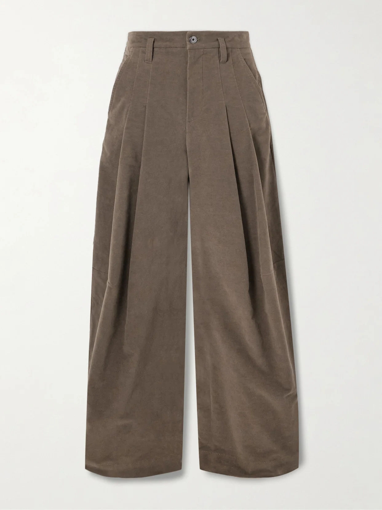 Pleated Brushed Cotton-blend Wide-leg Pants