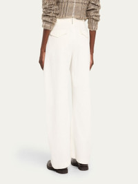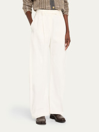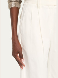 Brunello Cucinelli cotton tailored pants featuring a double-pleated front and a monili trimmed belt loop High rise Angled side slip pockets Back flap pockets Wide barrel legs Full length Hook-tab/zip fly; belt loops Cotton Lining: Acetate/polyester Dry clean Made in Italy Online Inquiries: BGS21_BA4GB| Store Inquiries: #5033278
