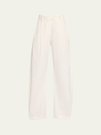 Pleated Cotton Barrel-Leg Tailored Pants