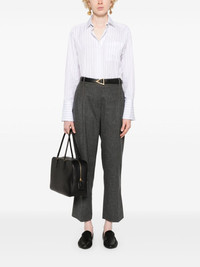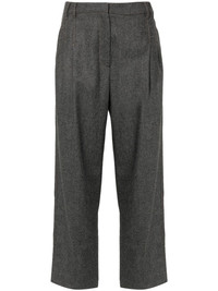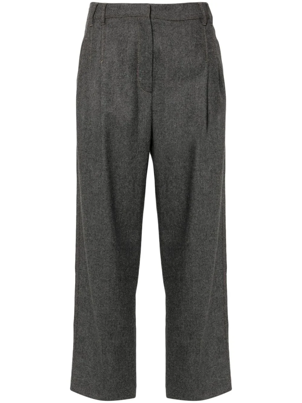 pleated felted straight trousers Highlights - Dark grey - Wool-cashmere blend - Felted - Contrast stitching - Belt loops - Pleat detailing - Two side slash pockets - Pressed crease - Two rear patch pockets - Straight leg - Concealed front button, hook and zip fastening Made in Italy Composition Outer: Brass 100%, Calf Leather 100%, Cotton 100%, Wool 88%, Cashmere 12% Lining: Polyester 36%, Acetate 32%, Cupro 32% SIZE & FIT Model measurements Height 5 ft 9 in(1.75 m) Bust/Chest 34.64 in(88 cm) Hips 36.61 in(93 cm) Waist 26.37 in(67 cm) FittingInformation Designed for a tapered fit, these trousers allow for a close fit at the waist and a loose unrestricted fit over the leg with a closer fit towards the ankle Made from a midweight non-stretch fabric This piece fits true to size – take your usual size