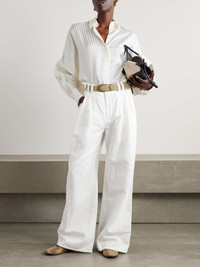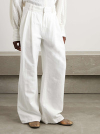 EXCLUSIVE AT NET-A-PORTER. Brunello Cucinelli's commitment to excellence elevates its wardrobe staples beyond the everyday. These high-rise jeans have been made in Italy from linen-rich denim and have wide legs enhanced by front pleats. The crisp white wash works well year-round. Size & Fit - Fits true to size, however those who are between sizes should take the smaller size - High-rise, cut for a wide-leg fit - Mid-weight, non-stretchy fabric - Model is 177cm/ 5'10" and is wearing an IT 38 Model measurements: - Bust: 79cm/ 31" - Waist: 61cm/ 24" - Hip: 89cm/ 35" Details & Care - White denim - Concealed hooks, button and zip fastening at front - 60% cotton, 40% linen - Machine wash