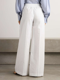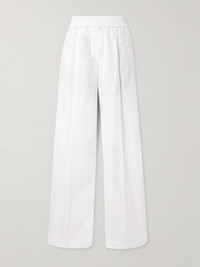 EDITORS'NOTES Brunello Cucinelli's pants combine the look of polished tailoring with the comfort of lounge styles. They've been made in Italy from soft cotton-blend twill and have an elasticated high waistband and lengthening pleats through the wide legs. SIZE & FIT Model measurements: - Fits large to size, take one size smaller than normal - High-rise, designed for a wide-leg fit - Lightweight, non-stretchy fabric - Model is 177cm/ 5'10", normally wears an IT 40 and is wearing an IT 38 - Bust: 81cm/ 32” - Waist: 62cm/ 24.5” - Hip: 88cm/ 34.5” DETAILS & CARE - White cotton-blend twill - Pulls on - 87% cotton, 13% polyamide - Dry clean