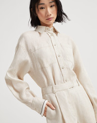 A distinctly summery feel characterizes these linen Baggy shorts. The rustic-textured fabric enhances the casual style of the Baggy silhouette, enriched with tailored details like pleats and a hook closure. MATERIALS The ultimate summer fiber enriches the collection of Brunello Cucinelli fabrics. The rustic, slightly irregular, dry texture of the linen fiber gives the garment a light, natural, crisp appearance. DETAILS Zip closure with metal hook and backing button Front pockets Pleat Back pockets Unlined 100% LINEN