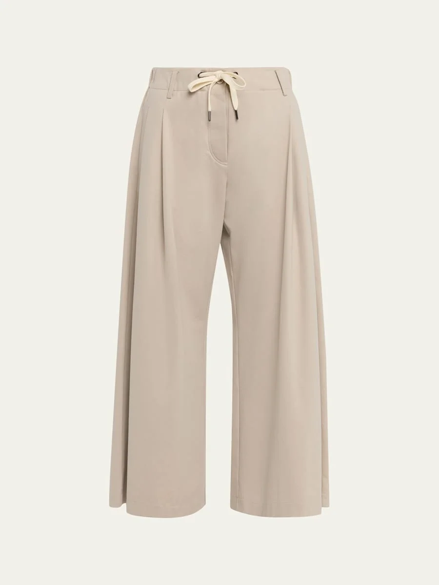 Brunello Cucinelli sport pants are crafted of a flowy cotton-blend with a drawstring waistband and pleated front detail Mid rise sits high on hip Pleated front Angled side slip pockets Back welt pockets Wide legs Cropped at the ankle Button fly; self-tie drawstring Cotton/acetate/nylon/polyamide Dry clean Made in Italy Online Inquiries: BGS21_BB1HL| Store Inquiries: #5438564