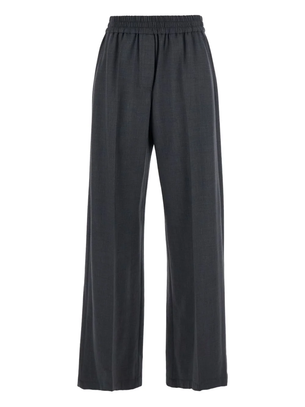 elasticated-waist trousers Highlights - Dark gray - Elasticated waistband - Two front pockets - Pleat details - Flowing design Made in Italy Composition Virgin Wool 75%, Polyamide 23%, Elastane 2%