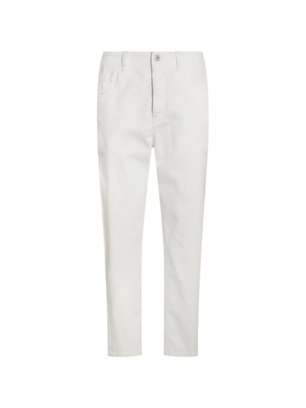 pocket denim jeans Highlights - Natural white - Cotton - Belt loops - Zip fastening - Front button fastening - Five pockets Made in Italy Composition Cotton 98%, Elastane 2% Washing instructions Read Manufacturer Guidelines