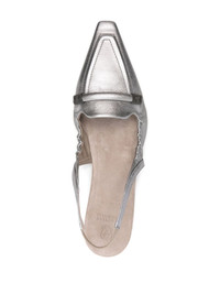 pointed-toe slingback ballerina shoes Highlights - Silver-tone - Calf leather - Grained texture - Signature monili chain detail - Pointed toe - Elasticated slingback strap - Branded footbed - Flat sole Made in Italy Composition Sole: Calf Leather 100%, Rubber 100% Outer: Calf Leather 100% Lining: Calf Leather 100% SIZE & FIT Measurement HEEL 0.78 in(2 cm)