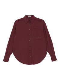Monili chain-embellished shirt Highlights - Burgundy - Curved hem - Button fastening - Patch pocket Made in Italy Composition Eco Brass 100%, Cotton 72%, Polyamide 23%, Elastane 5% SIZE & FIT Model measurements Height 5 ft 10 in(1.78 m) Bust/Chest 33.46 in(85 cm) Hips 36.22 in(92 cm) Waist 23.22 in(59 cm) Washing instructions Hand Wash