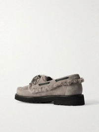 Bead-embellished shearling-trimmed suede loafers Light gray