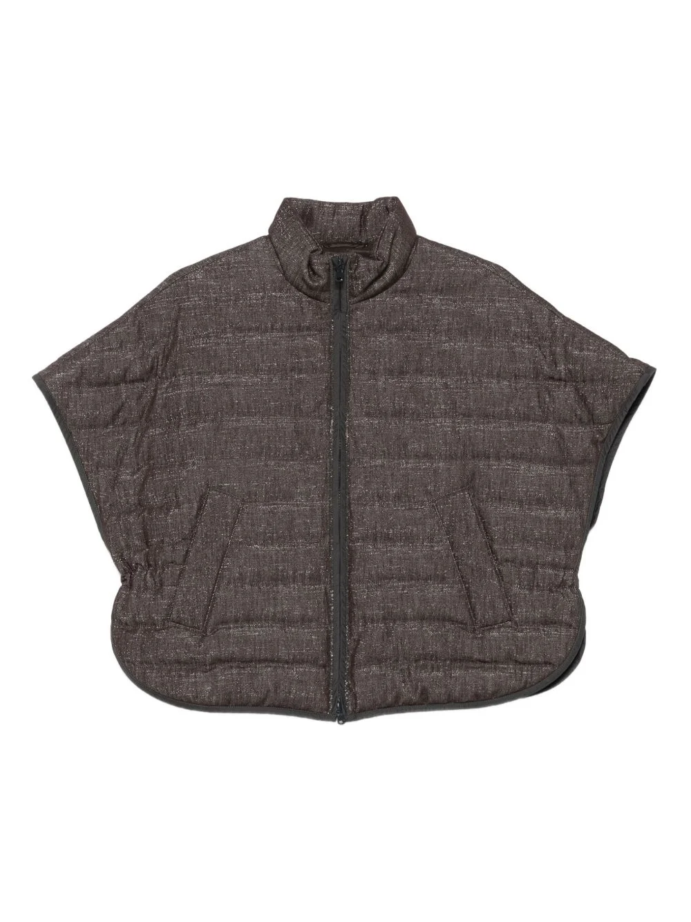 quilted zip-front jacket Highlights - Chcolate brown - Quilted - Zip fastening - Short sleeves - Straight hem Made in Italy Composition Fabric 100% SIZE & FIT Model measurements Height 5 ft 10 in(1.78 m) Bust/Chest 33.85 in(86 cm) Hips 36.61 in(93 cm) Waist 26.77 in(68 cm) Washing instructions Dry Clean Only