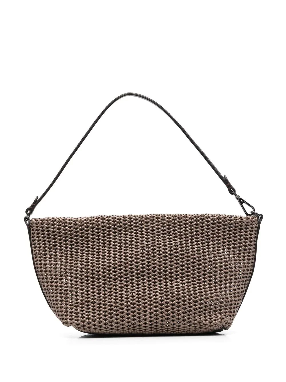 raffia-effect shoulder bag Adorned with the iconic Monili embroidery, Brunello Cucinelli presents this bag. In a brown hue, this bag features an interwoven raffia effect whilst the signature embroidery adorns the shoulder strap for instant recognition. Made in Italy Composition Outer: Polyamide 100% SIZE & FIT Model measurements Height 5 ft 11 in(1.8 m) Bust/Chest 31.49 in(80 cm) Hips 35.82 in(91 cm) Waist 24.8 in(63 cm) Measurement DEPTH 5.51 in(14 cm) HANDLE 6.69 in(17 cm) HEIGHT 7.48 in(19 cm) WIDTH 13.77 in(35 cm)