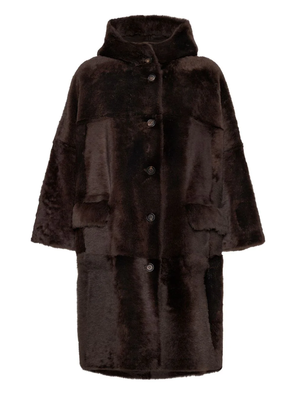 fur coat Highlights - Dark brown - High collar - Button fastening - Front patch pockets - Dropped shoulder seams Made in Italy Composition Lamb Fur 100% Washing instructions Read Manufacturer Guidelines