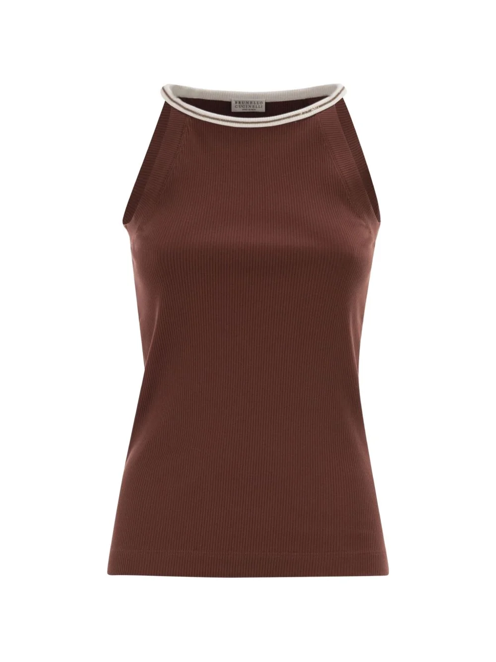 ribbed crew-neck tank top Highlights - Brown - Ribbed knit - Crew neck - Contrasting trim - Sleeveless Made in Italy Composition Cotton 95%, Spandex/Elastane 5% Washing instructions Read Manufacturer Guidelines