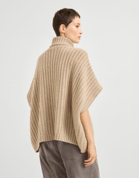 Cashmere Feather yarn wide rib poncho-style sweater