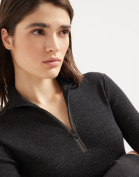 Virgin wool and cashmere rib lightweight sweater with precious half zip