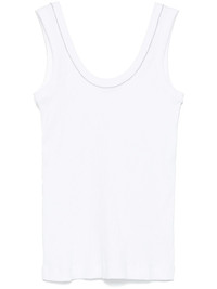 ribbed tank top Highlights - White - Scoop neck - Sleeveless Made in Italy Composition Brass 100%, Cotton 95%, Elastane 5% SIZE & FIT Model measurements Height 5 ft 9 in(1.76 m) Bust/Chest 31.1 in(79 cm) Hips 36.61 in(93 cm) Waist 24.8 in(63 cm) FittingInformation Designed for a close fit throughout Made from a midweight stretch fabric, this piece offers elasticity and flexibility when worn Washing instructions Hand Wash