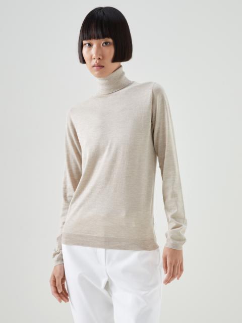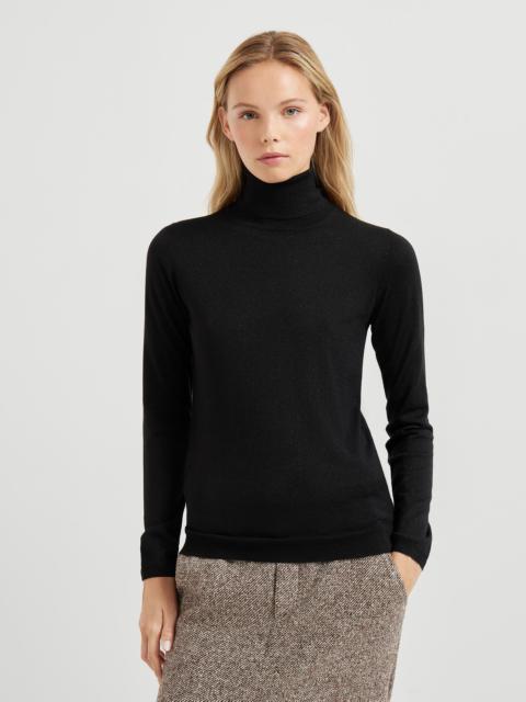 Sparkling cashmere and silk lightweight turtleneck sweater