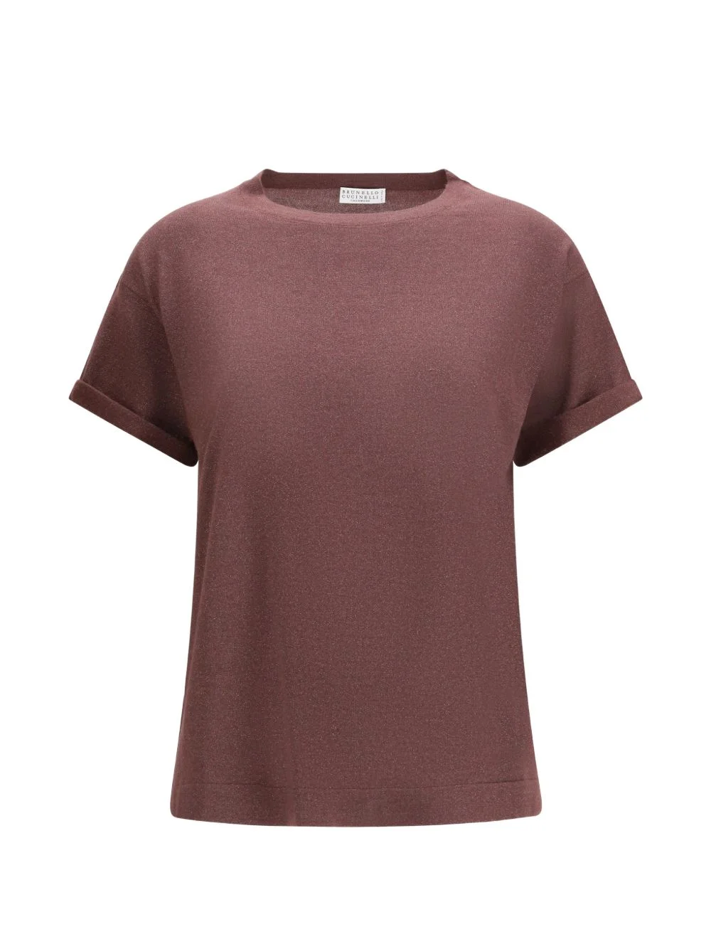 rolled-sleeve T-shirt Highlights - Brown - Round neck - Short sleeves - Rolled cuffs - Straight hem Made in Italy Composition Cashmere 51%, Silk 22%, Nylon 20%, Polyester 7% Washing instructions Read Manufacturer Guidelines