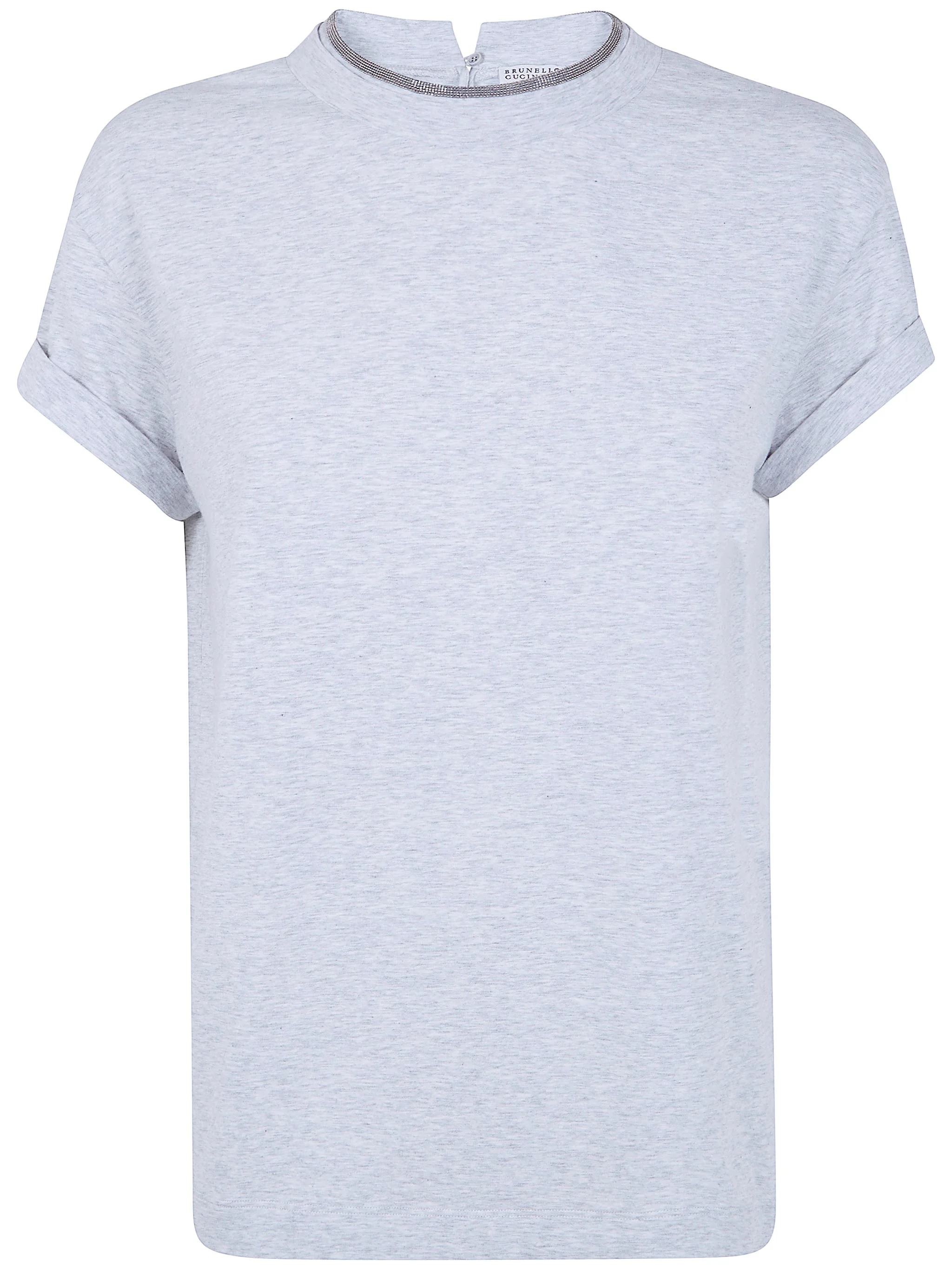 Introducing the 'ROUND NECK T-SHIRT' from the prestigious brand BRUNELLO CUCINELLI, a quintessential piece in the clothing category. This exquisite t-shirt is crafted from a luxurious blend of 93% cotton and 7% elastane, offering unparalleled comfort and stretch. Drenched in a sophisticated gray hue, it embodies Italian craftsmanship at its finest. Ideal for both casual outings and refined gatherings, this versatile piece elevates any outfit. Embrace its unique design and impeccable fit, making it a staple for the contemporary wardrobe. Invest in sustainable luxury with this timeless edition.. MadeIn: Italy IT Product code: M0T18BD200 098 C8003 SILVER