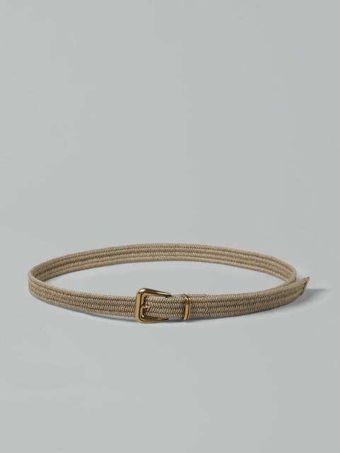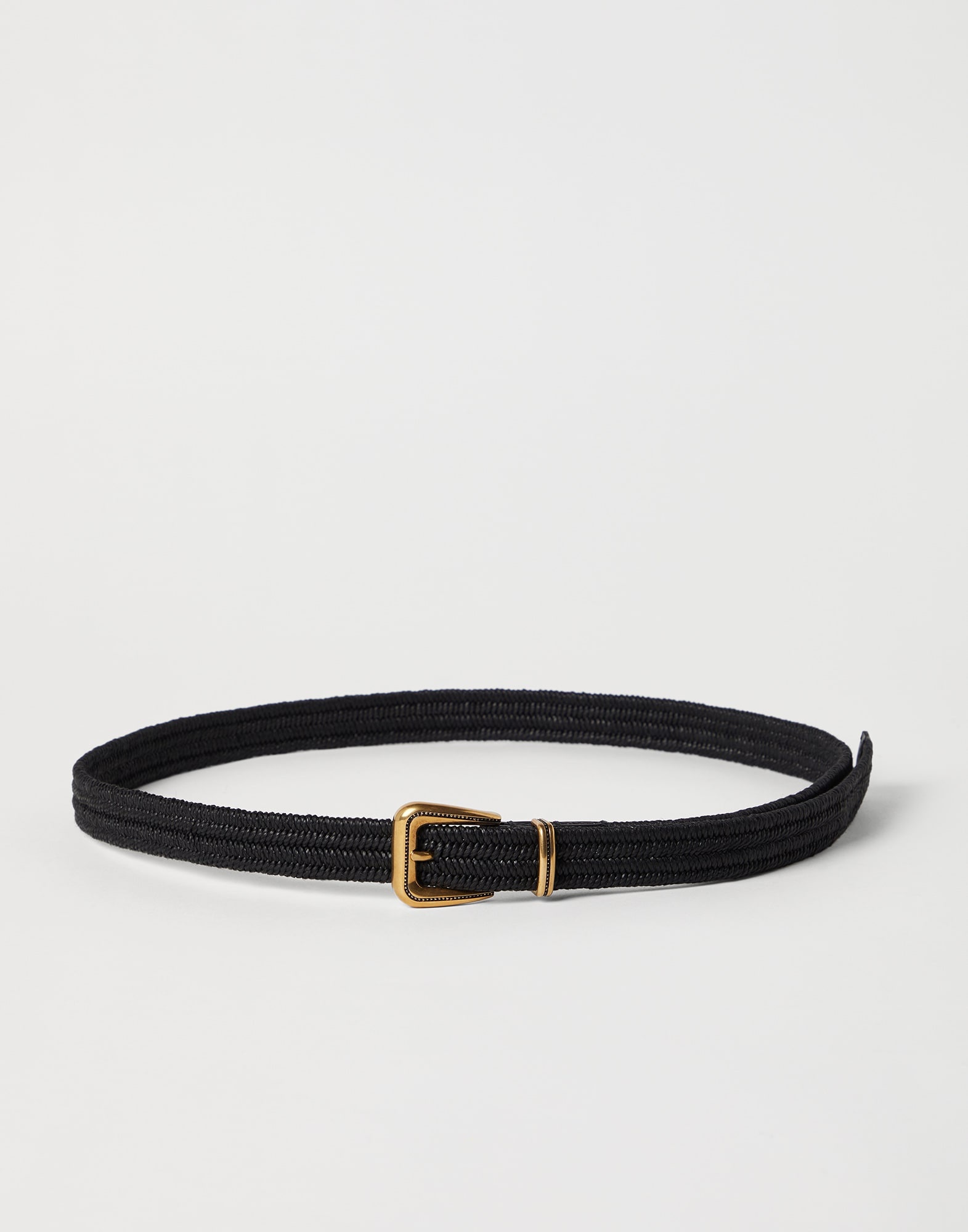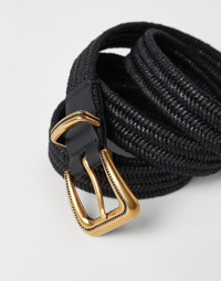 This new Rustic belt is characterized by a contemporary attitude and feminine details. The unique texture of the braided linen cord gives this accessory a light, rustic, and elegant style. The shiny appearance of the loop and the monili embroidered buckle adds a precious note to enhance the season’s looks. MATERIALS The linen, viscose and spandex woven cord showcases a lightweight, rustic and chic appearance, ideal for the warm weather. DETAILS Belt height approx. 2,5 cm 70% LINEN, 21% VISCOSE, 9% RUBBER