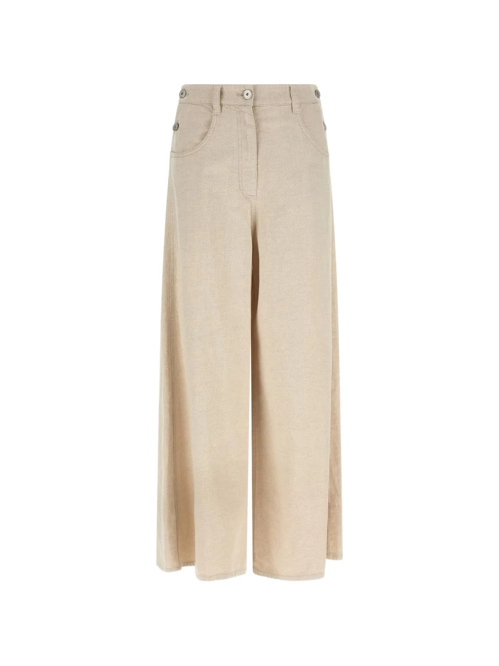 Maxi Sailor Monili-detail wide jeans Highlights - Beige - Side buttons - Pockets - Back logo label - Wide leg - High waist Made in Italy Composition Cotton 75%, Linen/Flax 25% Washing instructions Read Manufacturer Guidelines