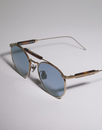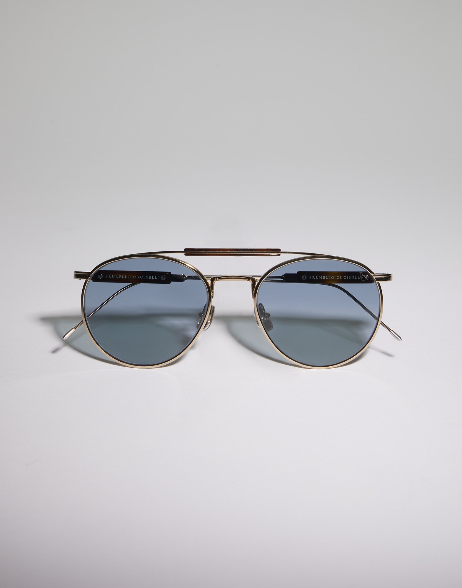 Vintage inspiration meets high-precision manufacturing techniques. Made in Japan, these ultra-thin and lightweight titanium sunglasses with a double bridge enhance the iconic nuances of Brunello Cucinelli collections thanks to high-quality acetate inserts. "Concealed" styling details such as the contrasting galvanic tips, the logo engraved on the upper front profile and the adjustable nose pads personalized with the brand's initials add a touch of subtle refinement to the frame.</br></br> The frame is part of the "Sartorial Sunset" line, where material and color combinations create unique effects, like the play of light and shadow at sunset. Thanks to skillful handcrafted techniques and sophisticated constructions, each style reveals itself in a balanced mix of contrasts. MATERIALS The frame is made from titanium, an extremely lightweight, flexible and strong material, and features small acetate inserts. Crystal sun lenses provide UV protection. DETAILS Frame shape: round Titanium frame Size: 52 mm (2.05"); Bridge: 19 mm (0.75"); Temple: 145 mm (5.71") Crystal lenses, base 2.5 UV protection lens coating RX-able style Adjustable nose pads Universal fit Handmade in Japan Exclusive packaging The frame's technical code (indicated on the inside of the temple) is: 0BC2004ST TITANIUM