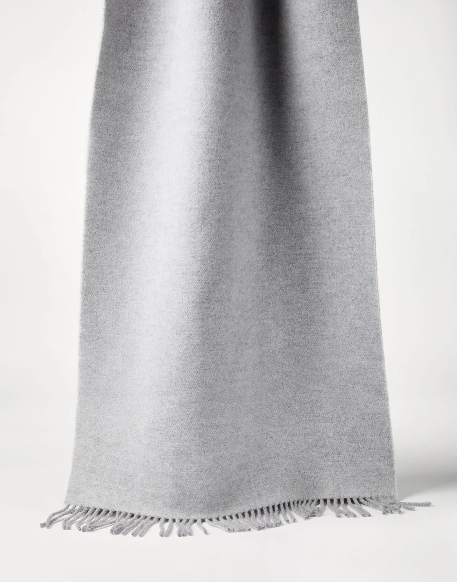 The excellence of refined fabrics enhances the essential style of this wool and cashmere knit scarf. Perfect for the winter, the precious yarn provides a comfortable feeling of softness. The fringe and hood complete the style with a casual touch. MATERIALS The combination of refined cashmere and wool fibers creates a very lightweight fabric with a very soft, compact hand. Designed for colder days, the style retains warmth and is very comfortable to wear. DETAILS Plain stitch Hem with fringe Scarf measures approx. 50 cm (19,69") x 240 cm (94,49") 59% WOOL, 41% CASHMERE