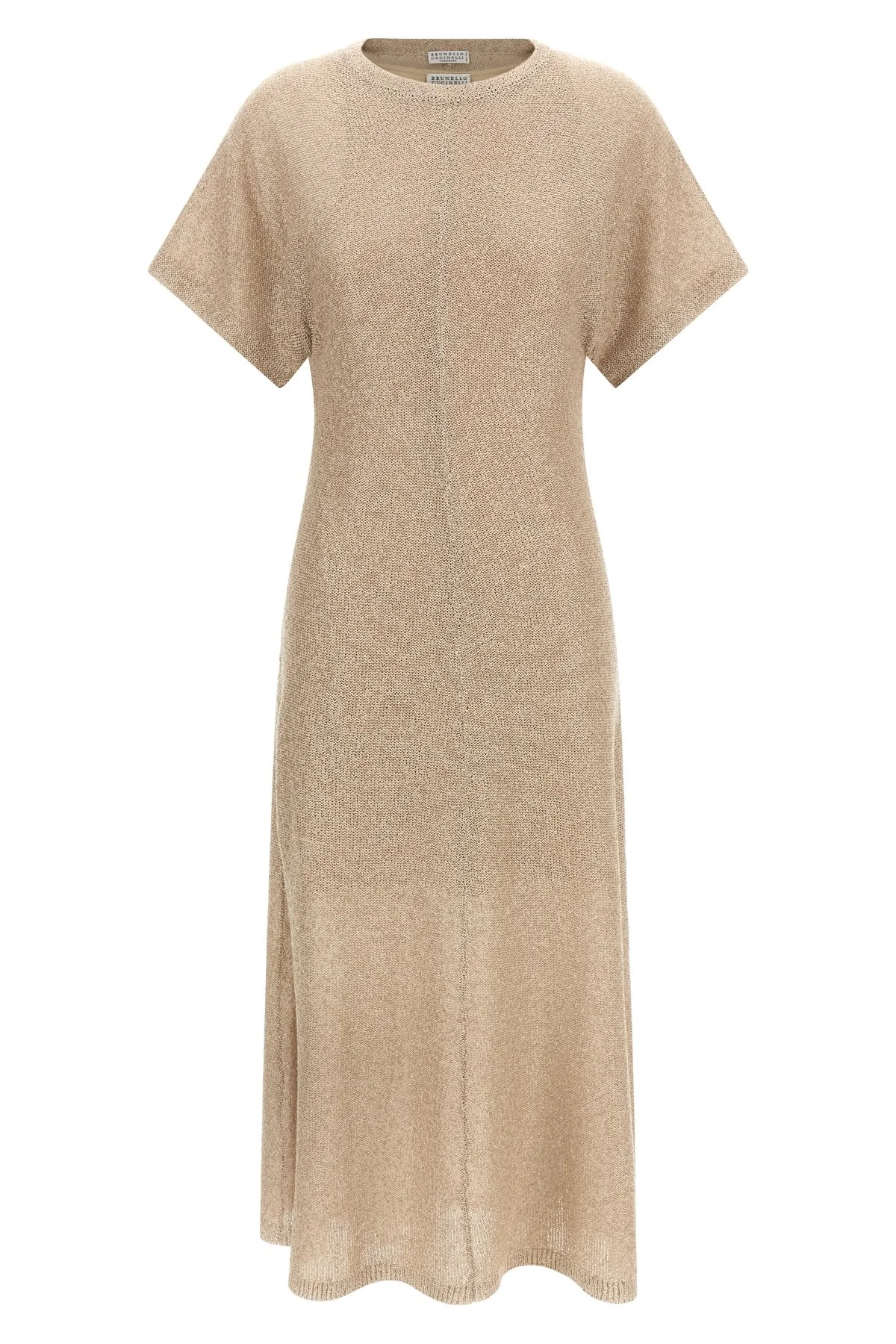 cod. MDJ560A90C9589 Long dress in linen, cashmere and silk blend with all-over sequin applique, round neckline, short sleeves, flared skirt, and removable petticoat. Color: Beige Size & Fit: true to size fit Composition: 60% li, 28% ws, 12% se Made in: Italy