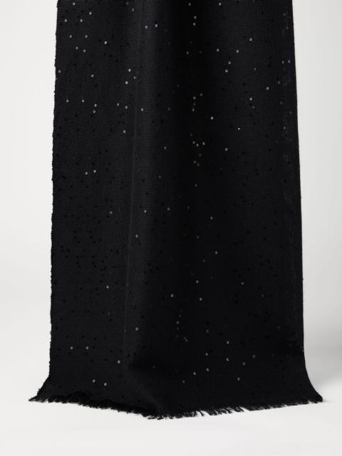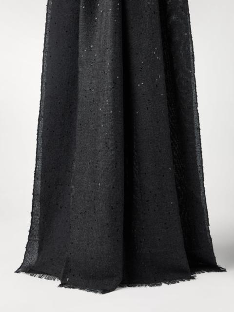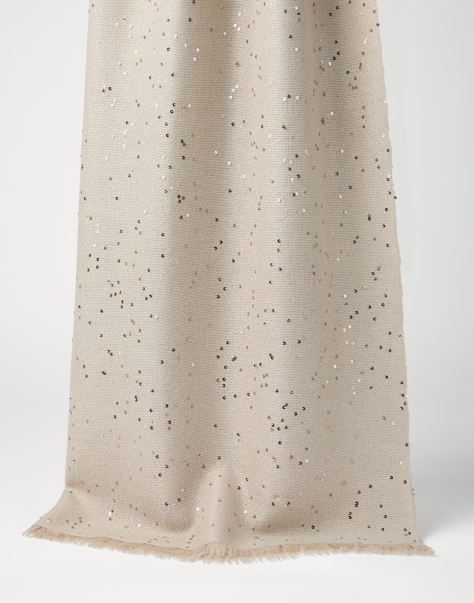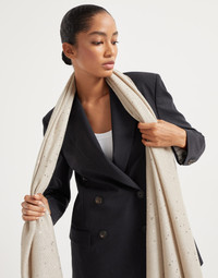 A sophisticated and shimmering look define this new cashmere and silk Diamond yarn scarf. The surface’s shiny reflections provide the accessory with a sparkling note. The fringe edges complete the style of the scarf with a bold touch. MATERIALS Cashmere is combined with silk to obtain an ultra-soft and weightless-effect yarn. DETAILS Scarf measures approx. 80 cm (31.50") x 200 cm (78.74") 70% CASHMERE, 30% SILK